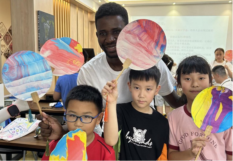 同饮世界水,共护母亲河。践行团深入塘河周边社区开展环保宣讲志愿活动。在桂柑社区,来自尼日尔的穆萨和中国队员一起用汉语、法语、英语等语言分享交流保护母亲河的小知识,用多种语言向居民和小朋友介绍各自国家的水、空气及土壤的发展及利用现状,带领小朋友开展节约水资源讲座、环保手工体验、温瑞塘河VR游、保护母亲河绘画等活动,提高大家环境保护的意识。