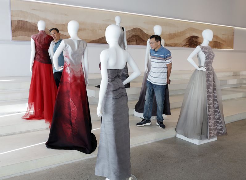 据悉,此次展览涵盖了清华美院李薇教授的时装设计与纤维艺术设计系列作品,温职院蒋振刚副教授与殷玉静副教授的宋韵瓯风时装设计系列作品,北京电影学院美术学院教师毕然博士的未央时装设计系列作品共40余件,通过当代时尚与传统文化跨界融合的故事叙述方式,展现了宋韵瓯风与时尚美学之间的气韵与魅力,让瓯越文化的丰富内涵乘着时尚之风走进大众的视野。展览的策划灵感来源于蒋振刚多次跟随李薇访问江南水乡及苏杭各地的所见所闻,融入了其在江南水乡的宋韵生活体验和温州当地人民对瓯越文化的热爱。“宋韵”更多体现的是对细腻、温婉、雅致的美好追求,“瓯风”则是对如此品质和美学感受的一种古韵向往,参展艺术家用作品呈现积极、完整地表达了“宋韵”“瓯风”的内在关系。