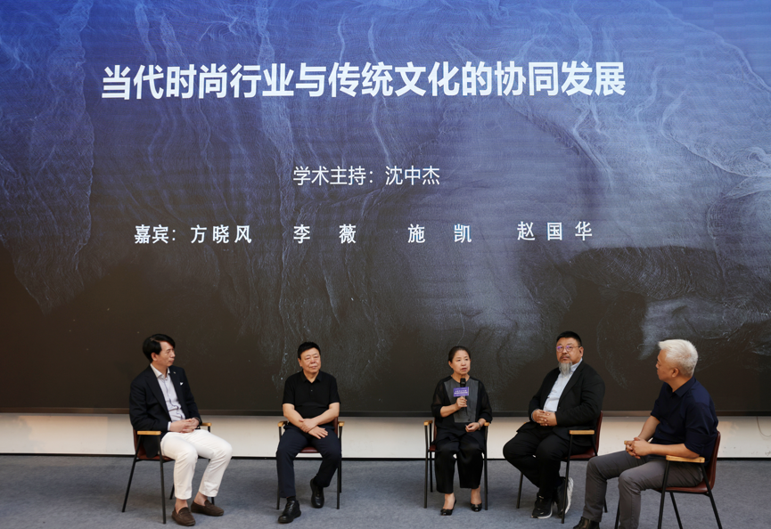 开幕式当天还举办了当代时尚行业与传统文化的协同发展论坛,温籍知名策展人沈中杰担任主持人。方晓风、李薇、施凯、赵国华等4位嘉宾,围绕传统文化和当代艺术如何融合展开探讨。