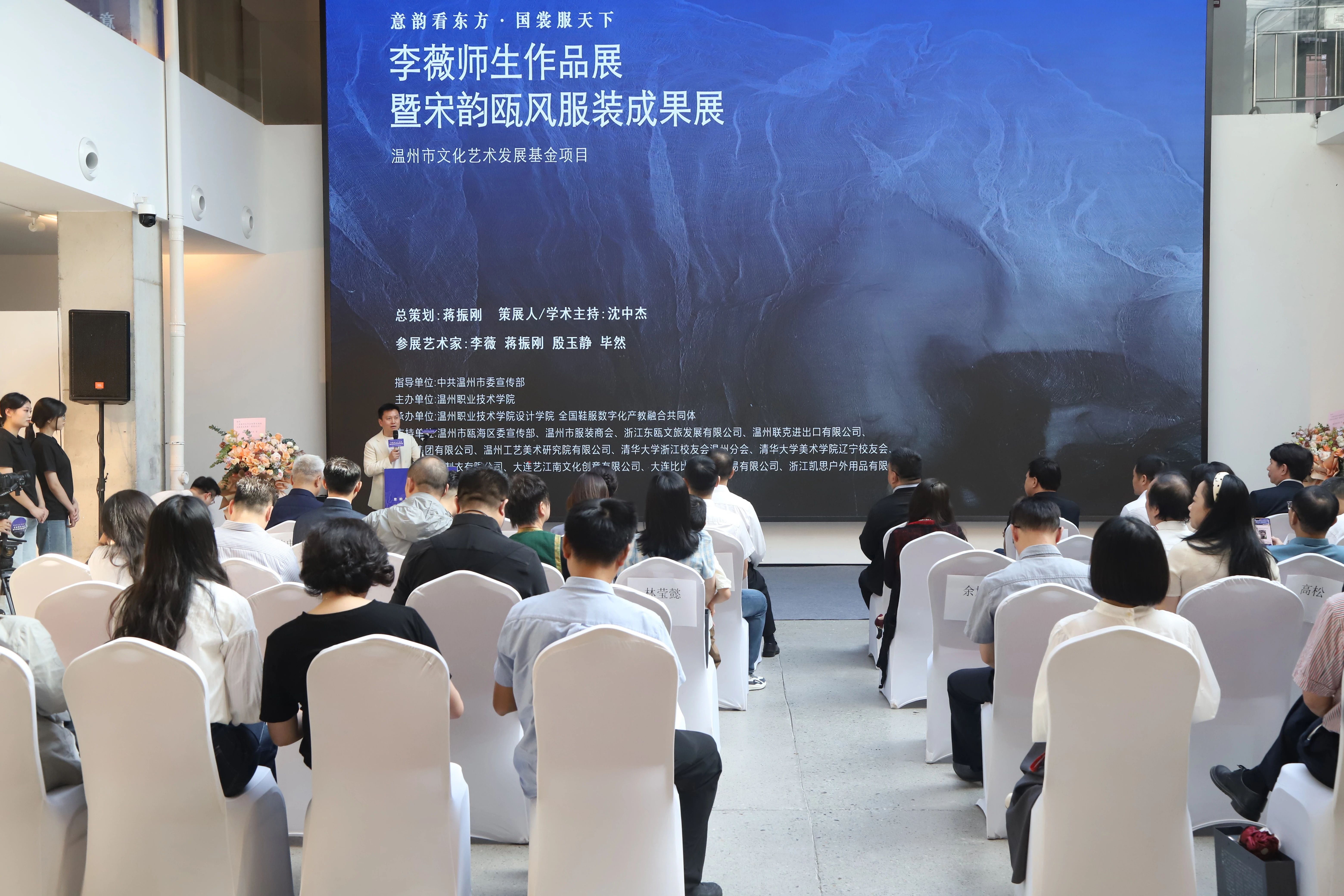 10月20日下午,清华大学美术学院教授李薇师生作品展暨宋韵瓯风服装成果展在瓯海区梧田老街东瓯书院隆重开幕,将持续至10月28日。本次展览由温州市委宣传部指导,温州职业技术学院主办,温州设计学院、全国鞋服数字化产教融合共同体承办。