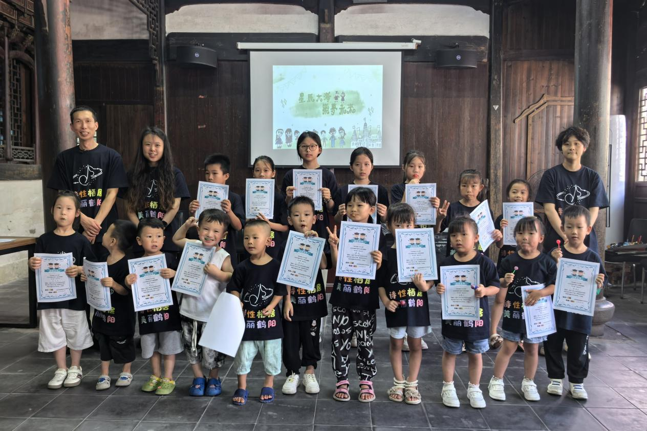暑期鹤阳村,如同楠溪江畔的许多乡村一样,常住人口以祖孙两代人为主。为了丰富“一老一小”的假期文化生活,黄建峰在村里创办了一个公益托管班,吸引村里20多个孩子报名。