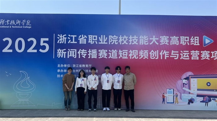 本网讯(人工智能学院通讯员 王贤志)近日,2025年浙江省职业院校技能大赛高职组新闻传播赛道短视频创作与运营赛项落下帷幕。我校人工智能学院数字媒体技术专业代表队从众多参赛队伍中脱颖而出,荣获大赛金奖,展现了温职学子的卓越风采。