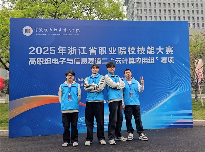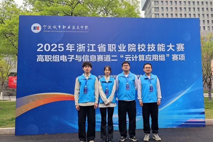 本网讯(人工智能学院通讯员 张雅洁)近日,2025年浙江省职业院校技能大赛(高职组)“云计算应用组”赛项圆满落幕。经过激烈角逐,我校人工智能学院计算机网络技术专业1队成员张智超、陈稣函、黄时良、岑毅及2队成员盛扬莹、姚成鸣、颜恒、王良俊,在张雅洁、赵尚宇、钟秀秀三位老师的指导下,分别荣获大赛金、银奖。