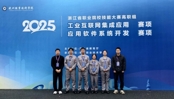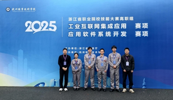 本网讯(人工智能学院通讯员 黄俊达)3月29日-30日,2025年浙江省职业院校技能大赛(高职组)“工业互联网集成应用”赛项在杭州落下帷幕。经过激烈角逐,我校人工智能学院黄俊达、郑迎亚两位老师指导的学生团队脱颖而出,由李中奇、黄舟女、孟婷、张真南组成的代表队斩获金奖,由陈庆有、陈杜昂、樊星、柳淼清组成的代表队荣获银奖。