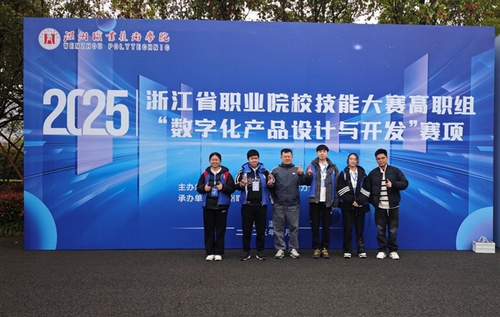 本网讯(人工智能学院通讯员 余汪宇)近日,2025年浙江省职业院校技能大赛高职组“数字化产品设计与开发”赛项圆满落幕。我校人工智能学院两支参赛队伍在激烈的竞争中表现出色,分别荣获金奖和银奖,充分展现了我校学子在数字化领域的专业实力与创新精神。