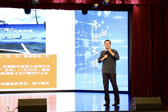谷川在讲话中指出,团市委联合市网络作家协会,联动10余家优质企业和在温各高校团委,共同发起“温青创艺”人才培养计划,旨在让更多在温高校的青年学子,成为温州文化“新三样”出海的生力军。接着,他宣布“温青创艺”在温高校文化“新三样”人才培养计划正式启动。